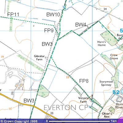 bridleway starts on west side of Drove Road, between Everton and Gamlingay Cinques.